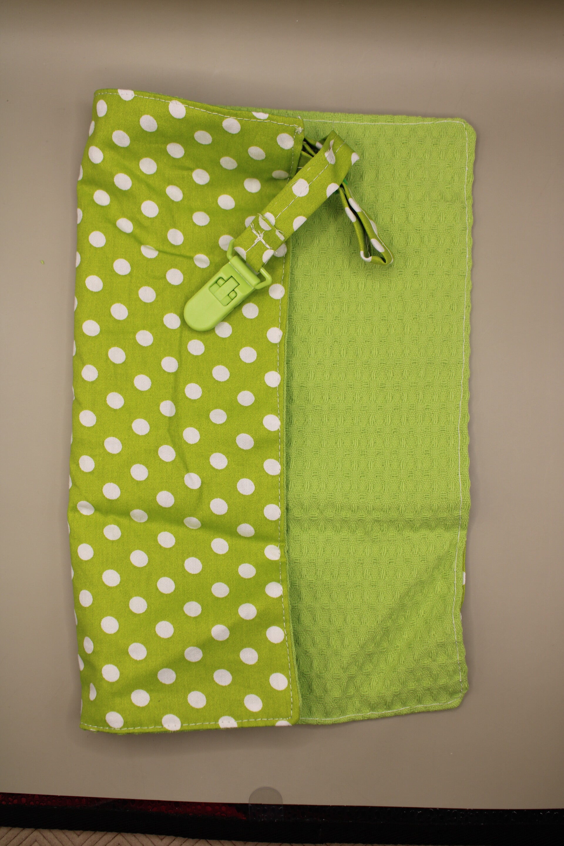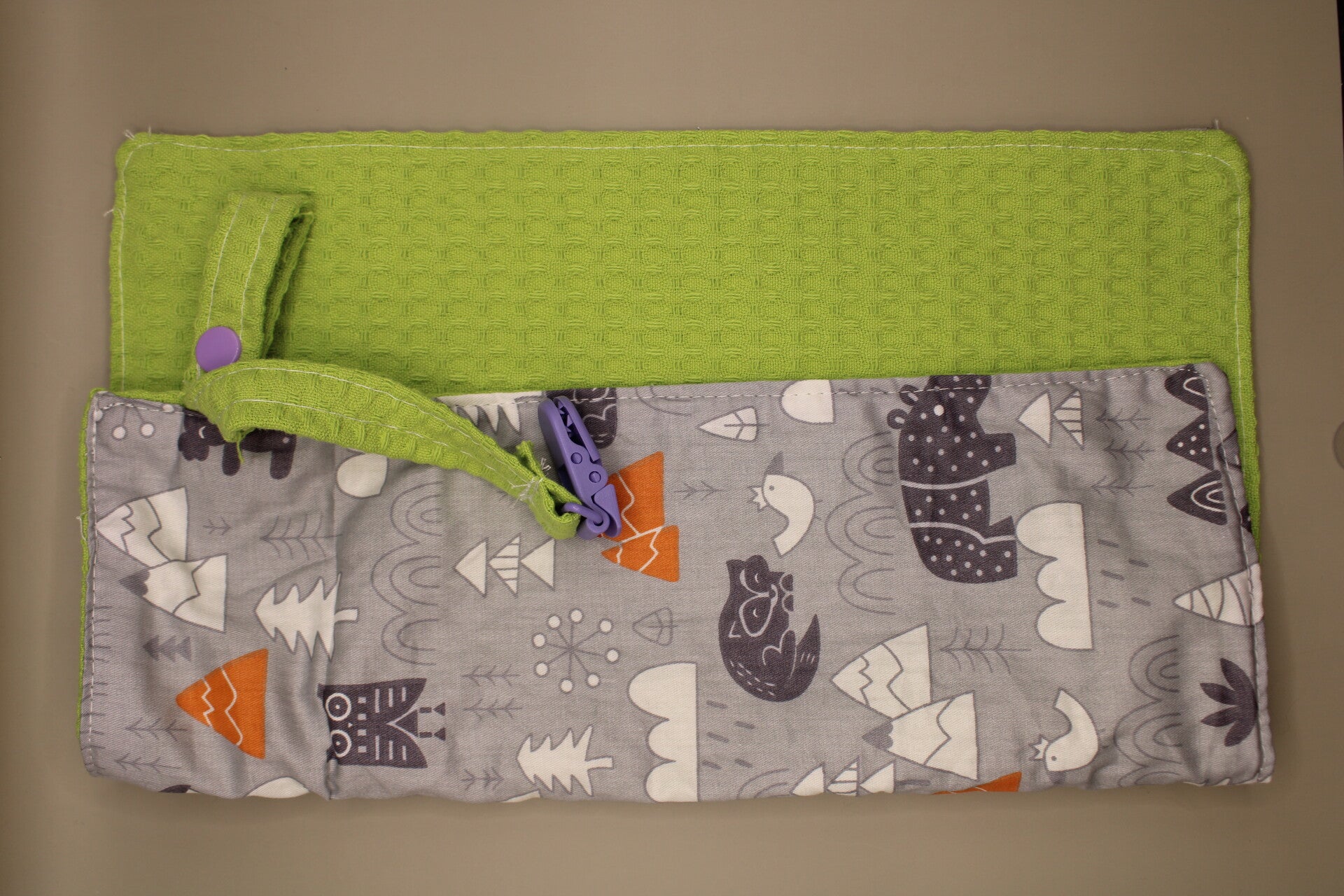 Katoen met print en limoengroen wafelstof.